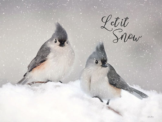 Let It Snow Titmouse Pair Black Ornate Wood Framed Art Print with Double Matting by Deiter, Lori