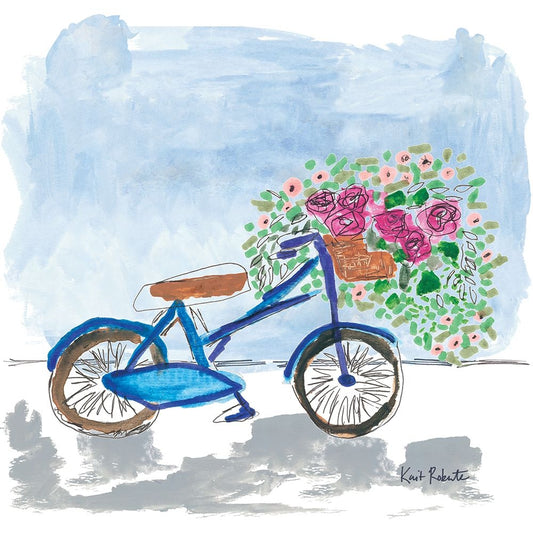 Floral Bicycle Black Ornate Wood Framed Art Print with Double Matting by Roberts, Kait