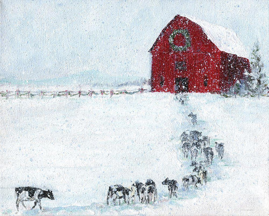 Last Cow in Before Christmas Black Ornate Wood Framed Art Print with Double Matting by Kamdon Kreations