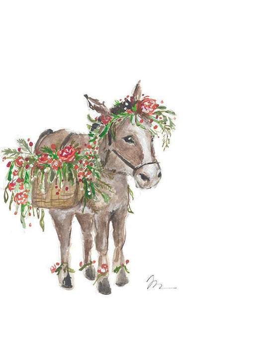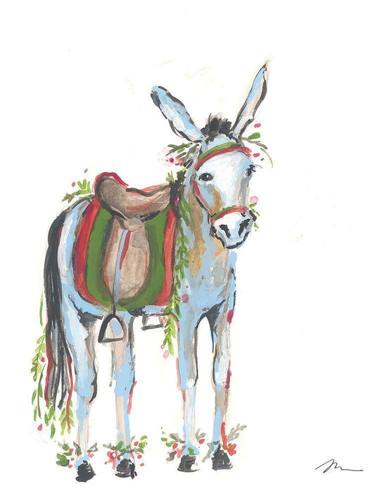Christmas Donkey I Black Ornate Wood Framed Art Print with Double Matting by Mingo, Jessica