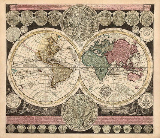 Planisphaerium White Modern Wood Framed Art Print with Double Matting by Visscher, Nicholas