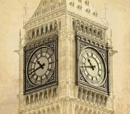 Big Ben Vintage White Modern Wood Framed Art Print with Double Matting by Anonymous