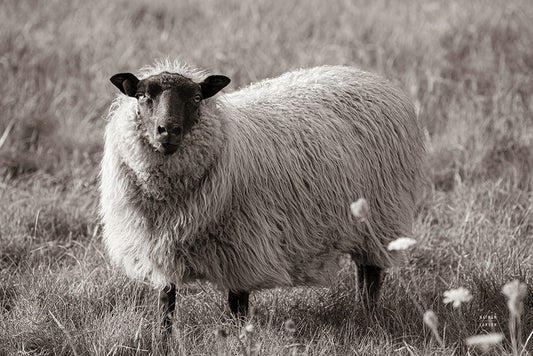 Sepia Sheep Black Ornate Wood Framed Art Print with Double Matting by Larson, Nathan