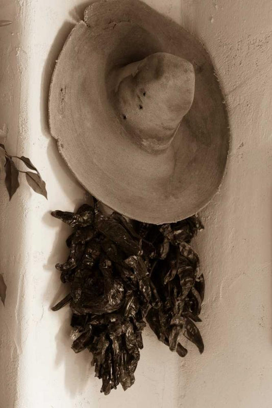 Old Hat and Ristras Black Ornate Wood Framed Art Print with Double Matting by Mahan, Kathy
