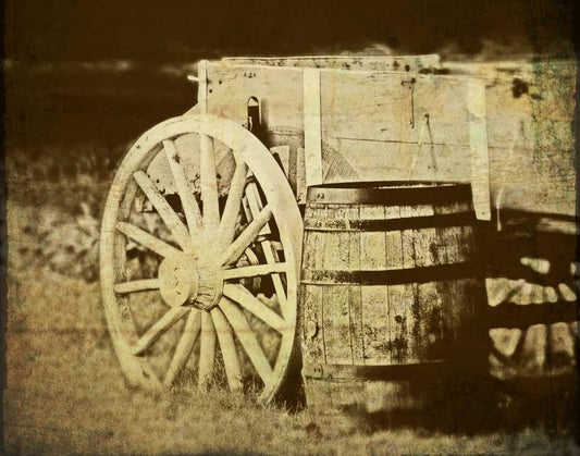 Rustic Wagon and Barrel Black Ornate Wood Framed Art Print with Double Matting by McNemar, C. Thomas