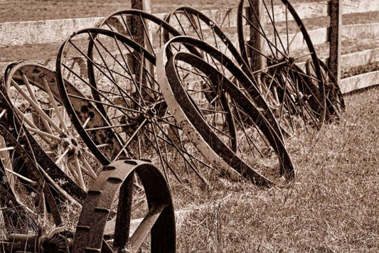 Antique Wagon Wheels II Black Ornate Wood Framed Art Print with Double Matting by McNemar, C. Thomas
