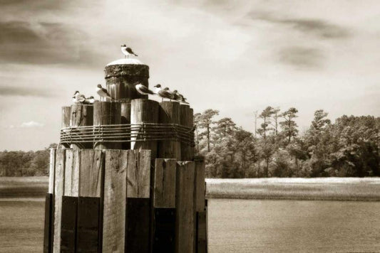 Pamlico Gulls I Black Ornate Wood Framed Art Print with Double Matting by Hausenflock, Alan