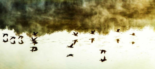 Geese on the Lake I Black Ornate Wood Framed Art Print with Double Matting by Hausenflock, Alan