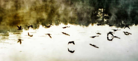 Geese on the Lake II Black Ornate Wood Framed Art Print with Double Matting by Hausenflock, Alan