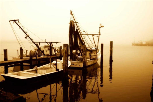 Beaufort Shrimpers Black Ornate Wood Framed Art Print with Double Matting by Hausenflock, Alan