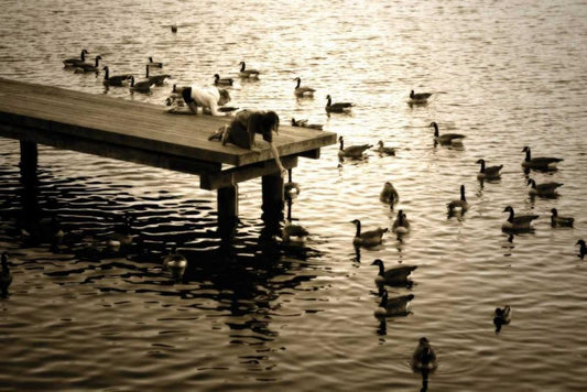 Feeding the Geese I Black Ornate Wood Framed Art Print with Double Matting by Hausenflock, Alan