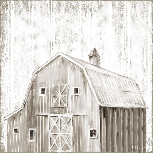 White Wood Barn I Black Ornate Wood Framed Art Print with Double Matting by Brent, Paul