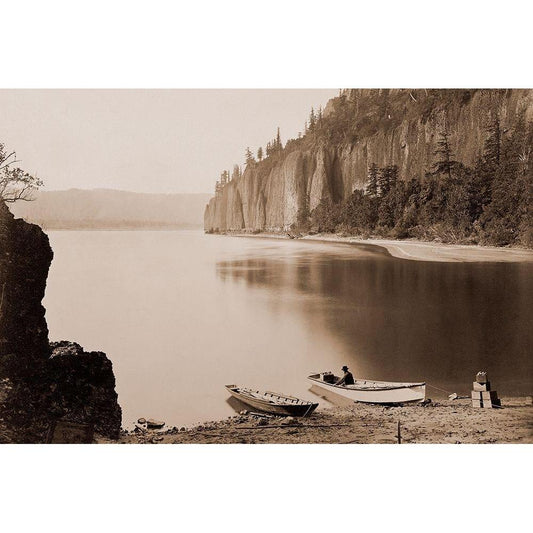 Cape Horn, Columbia River, Oregon, 1867 Black Modern Wood Framed Art Print with Double Matting by Watkins, Carleton