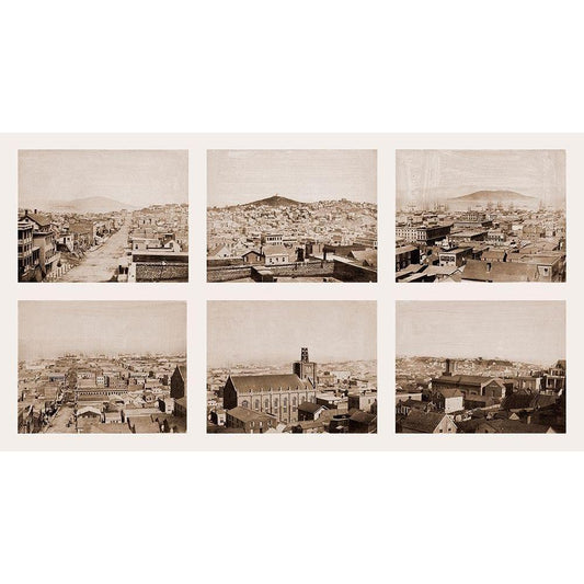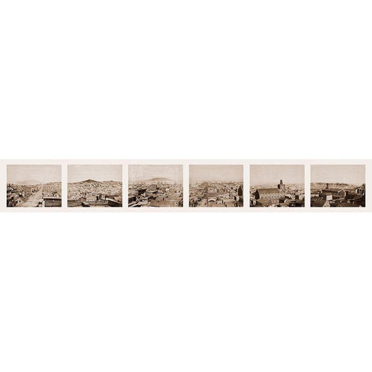 Six-part Panorama of San Francisco, 1855-1856 Black Modern Wood Framed Art Print with Double Matting by Watkins, Carleton