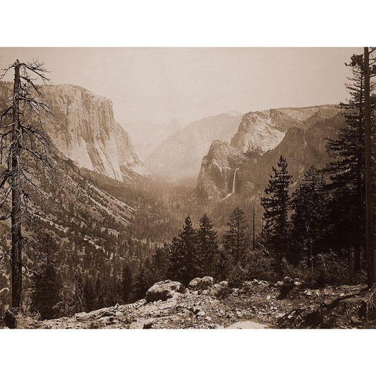 The Yosemite Valley from Inspiration Pt. Mariposa Trail, 1865-1866 Black Modern Wood Framed Art Print with Double Matting by Watkins, Carleton