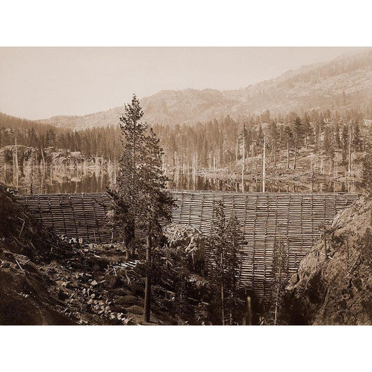 Dam and Lake, Nevada County, California, Near View, about 1871 Black Modern Wood Framed Art Print with Double Matting by Watkins, Carleton