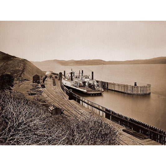 The Ferryboat Solano, Port Costa, California, after 1879 Black Modern Wood Framed Art Print with Double Matting by Watkins, Carleton
