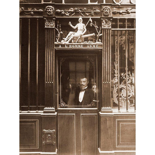 25, Rue des Blancs Manteaux - Cafe, rue des Blancs Manteaux. Sepia Black Modern Wood Framed Art Print with Double Matting by Atget, Eugene