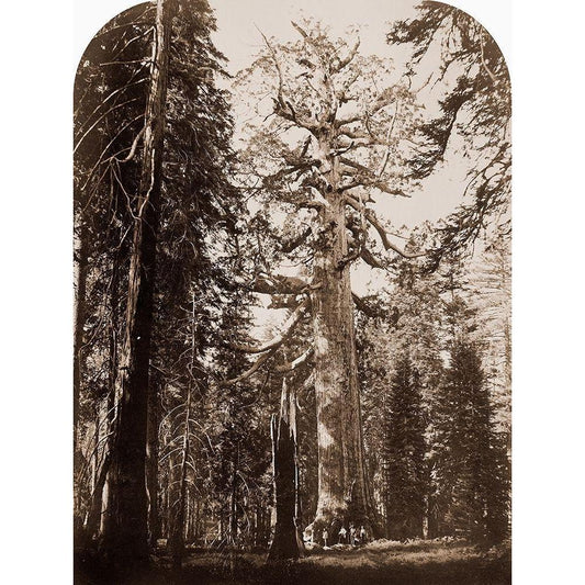 The Grizzly Giant - 33 feet diameter - with Galen Clark, MariVintagea Grove, Yosemite, California, Black Modern Wood Framed Art Print with Double Matting by Watkins, Carleton