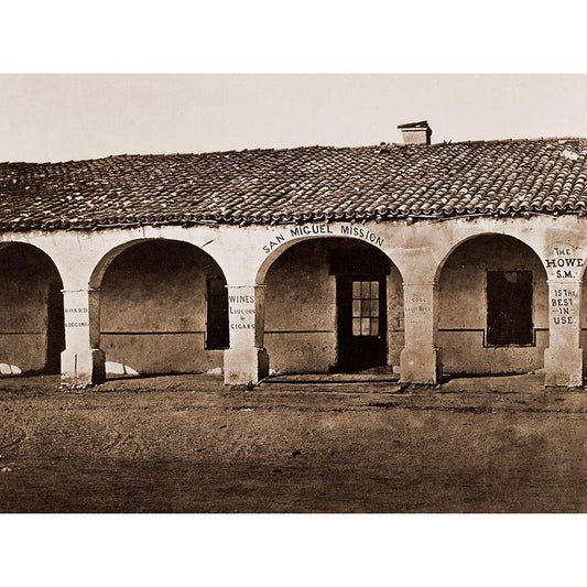 San Miguel Mission, San Miguel, California, 1876-1880 Black Modern Wood Framed Art Print with Double Matting by Watkins, Carleton
