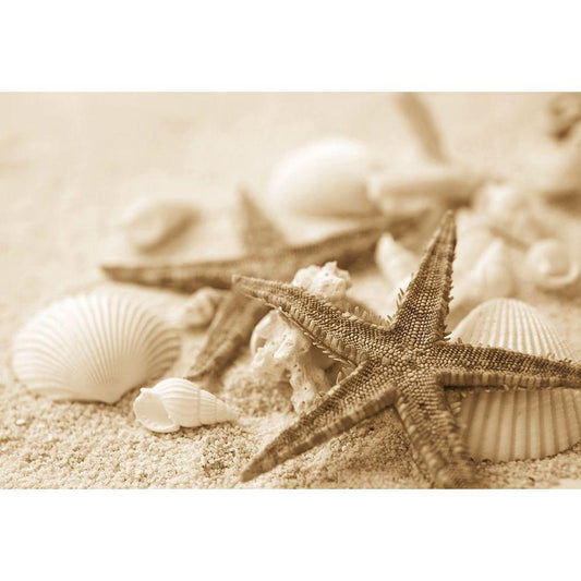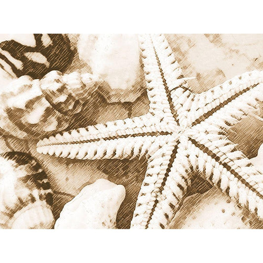 Starfish and Seashells Black Modern Wood Framed Art Print with Double Matting by Anonymous