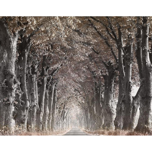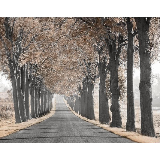 Road Through Tree Alley Black Modern Wood Framed Art Print with Double Matting by Anonymous