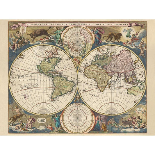 Terrarium Orbis Tabula Black Modern Wood Framed Art Print with Double Matting by Visscher, Nicholas