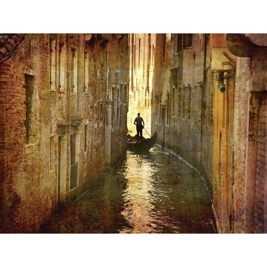 Vintage Gondolier Black Modern Wood Framed Art Print with Double Matting by K. Nielsen