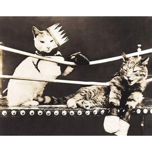 Catfight Black Modern Wood Framed Art Print with Double Matting by Anonymous