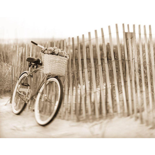 Bike by Beach Fence Black Modern Wood Framed Art Print with Double Matting by Anonymous