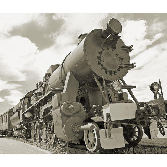 Vintage Locomotive Black Modern Wood Framed Art Print with Double Matting by Anonymous
