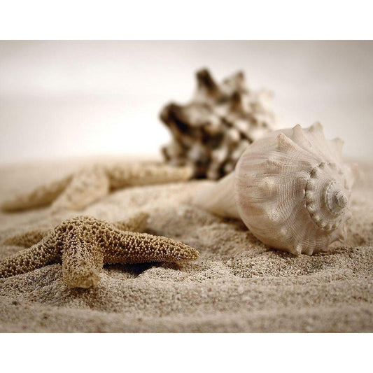 Starfish in the Sand Black Modern Wood Framed Art Print with Double Matting by Anonymous