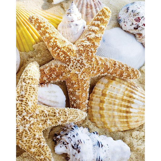 Starfish and Shells Black Modern Wood Framed Art Print with Double Matting by Anonymous