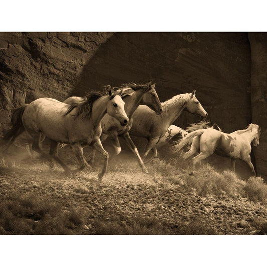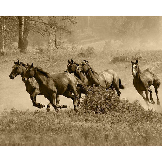 Wild Horses II Black Modern Wood Framed Art Print with Double Matting by Anonymous