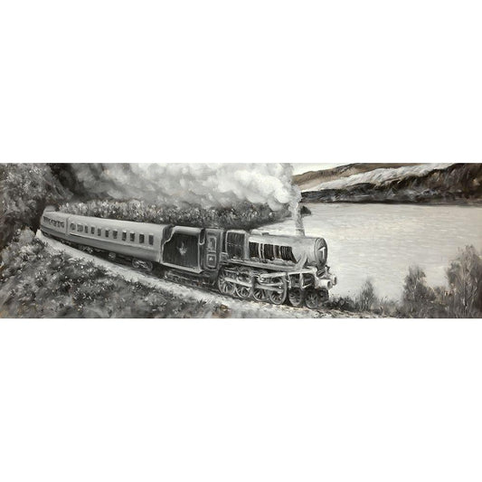 Steam Engine Train Black Modern Wood Framed Art Print with Double Matting by Atelier B Art Studio