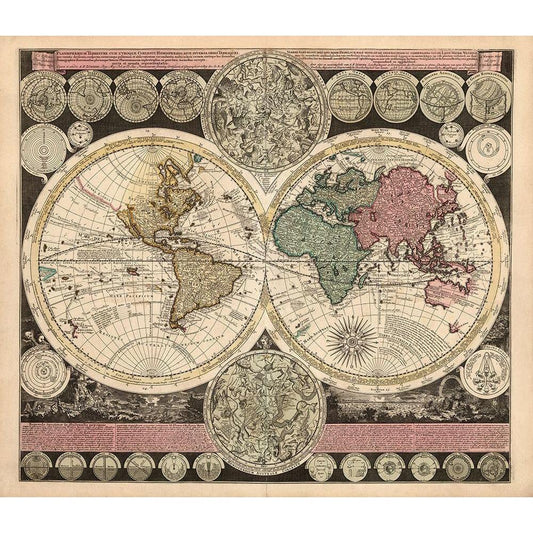 Planisphaerium Black Modern Wood Framed Art Print with Double Matting by Visscher, Nicholas