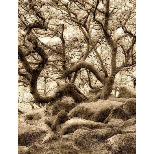 Moss covered oak trees in Wistmans Wood. Devon County. Dartmoor National Park, England Black Modern Wood Framed Art Print with Double Matting by Frates, Dennis