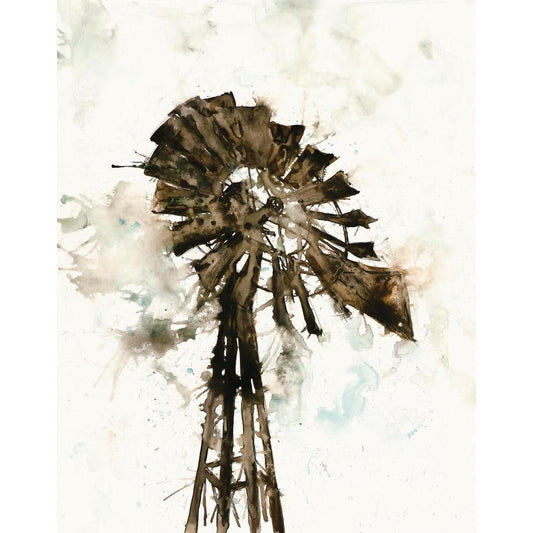 Watercolor Windmill Black Modern Wood Framed Art Print with Double Matting by White Ladder