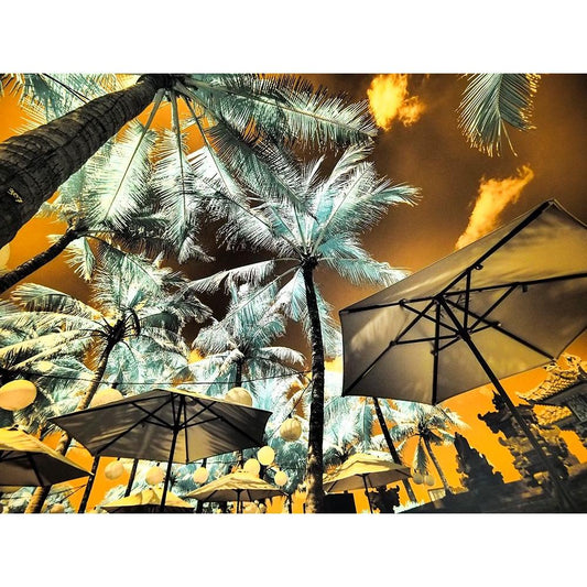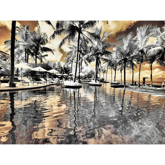 Bali-Ubud-Umbrellas-Ponds and pools at hotel in Ubud Black Modern Wood Framed Art Print with Double Matting by Eggers, Terry