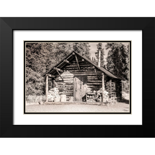 Small- rustic log home in sepia. Black Modern Wood Framed Art Print with Double Matting by Muir, Janet