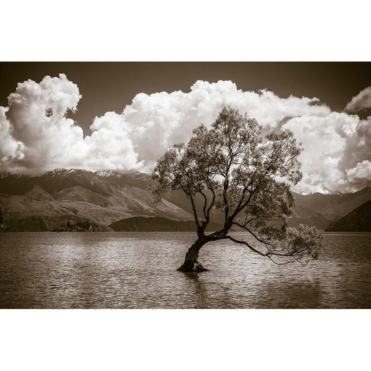 The Wanaka tree-Lake Wanaka-Otago-South Island-New Zealand Black Modern Wood Framed Art Print with Double Matting by Bishop, Russ
