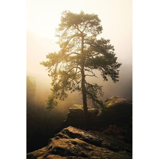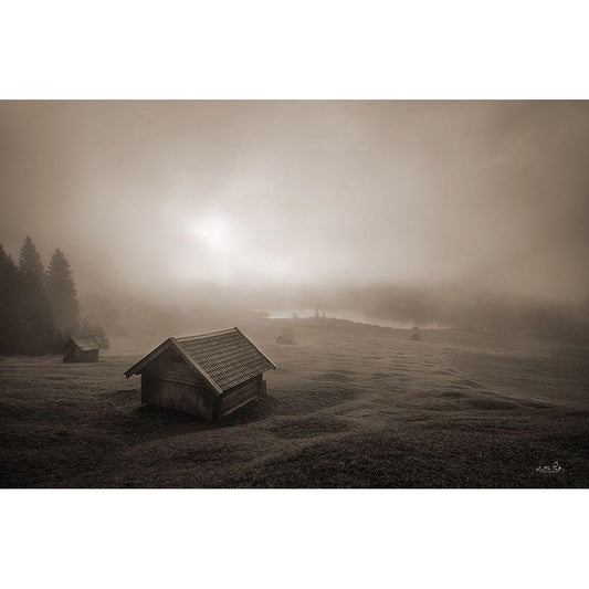 Misty Morning Sunrise Black Modern Wood Framed Art Print with Double Matting by Podt, Martin