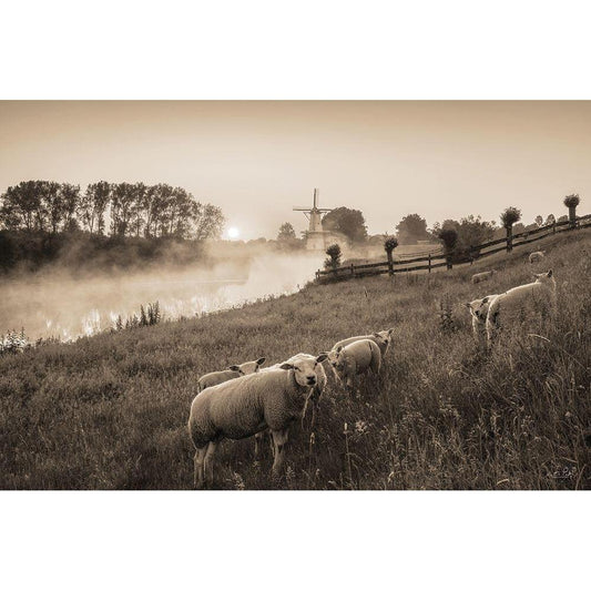 Grazing Sheep Black Modern Wood Framed Art Print with Double Matting by Podt, Martin