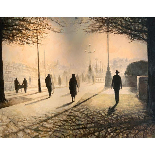 Afternoon In Paris Black Modern Wood Framed Art Print with Double Matting by Gipe, Lawernce