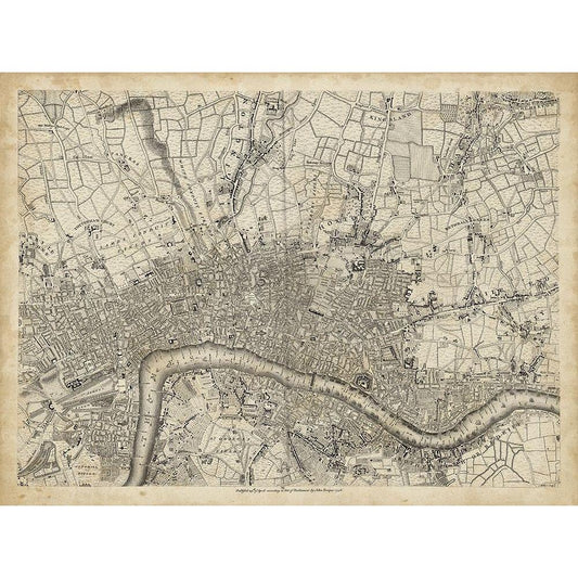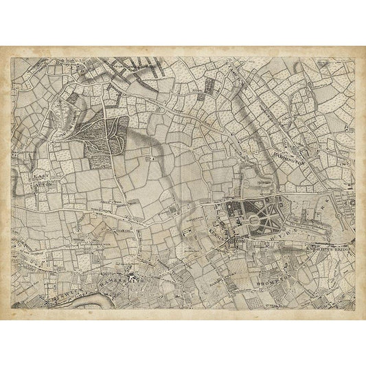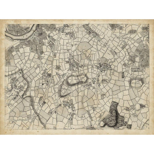 Map of London Grid XVI Black Modern Wood Framed Art Print with Double Matting by Unknown