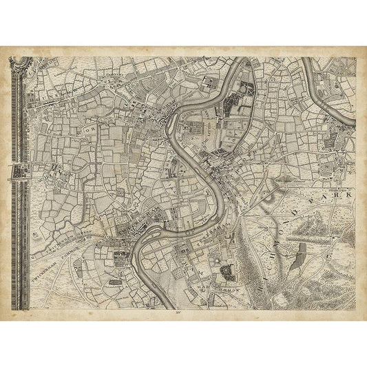 Map of London Grid IX Black Modern Wood Framed Art Print with Double Matting by Unknown