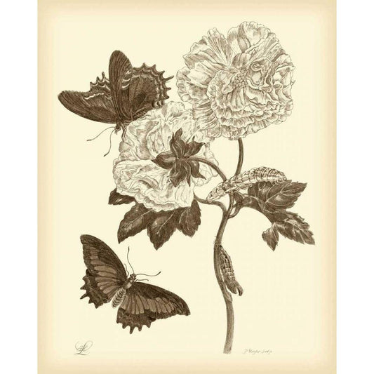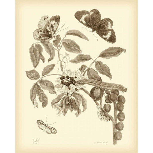 Nature Study in Sepia II Black Modern Wood Framed Art Print with Double Matting by Merian, Maria S.
