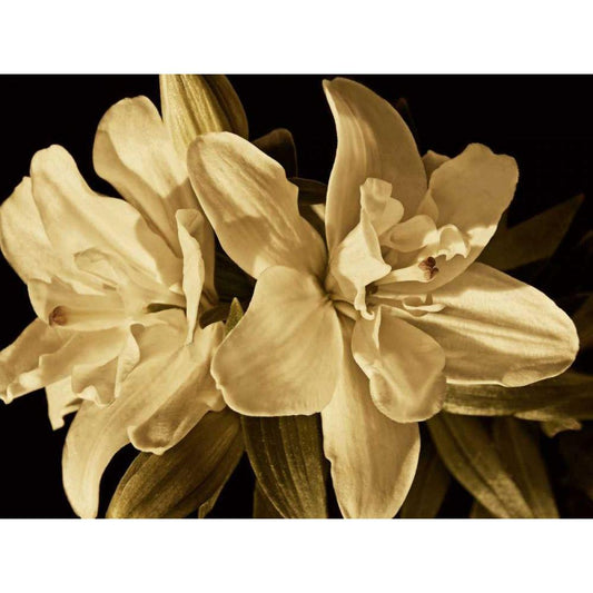 Blue Floral on Sepia II Black Modern Wood Framed Art Print with Double Matting by Reynolds, Jade