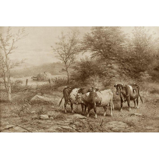 Grazing Cattle Black Modern Wood Framed Art Print with Double Matting by Riecke, George