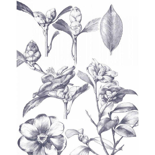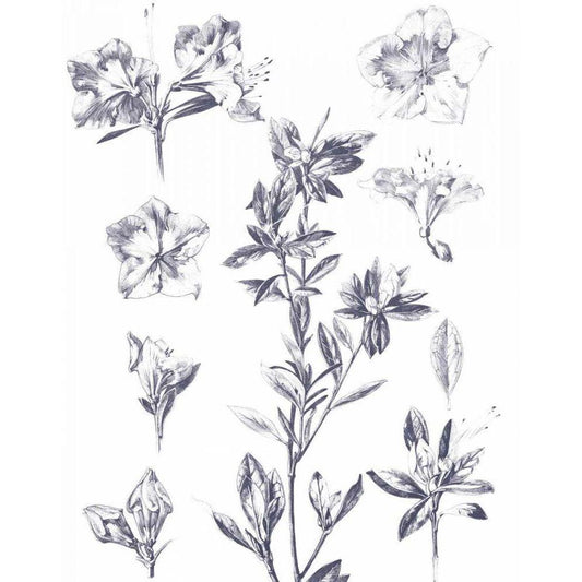Lithograph Florals I Blue Black Modern Wood Framed Art Print with Double Matting by Wild Apple Portfolio